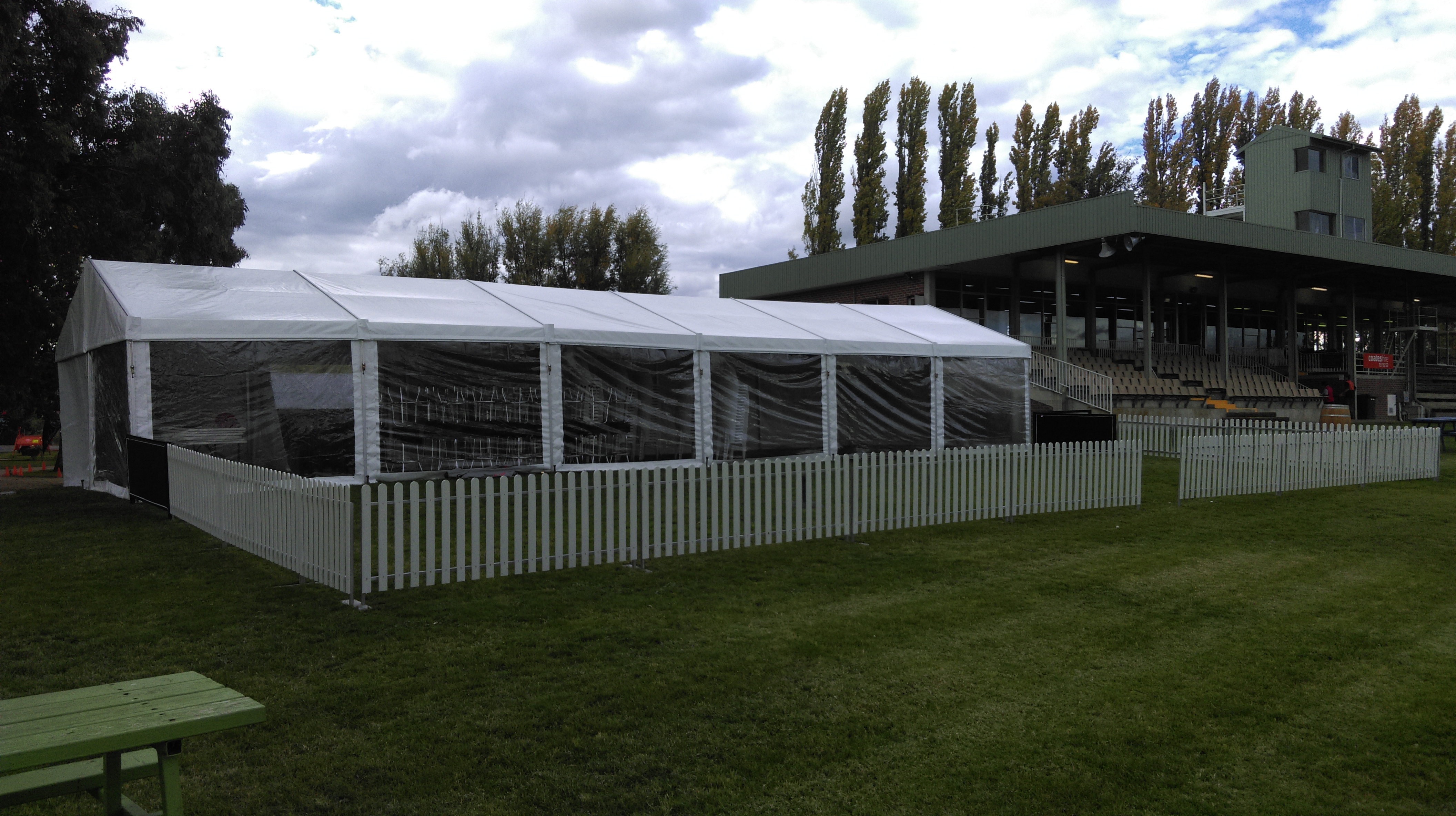 Our pegged marquees use 900mm long pegs which go straight down into the ground so the area needs to be clear of underground services and any sprinkler systems clearly marked out for us. If the marquee can't be pegged due to being on a solid surface or having underground services we can weight the marquee.