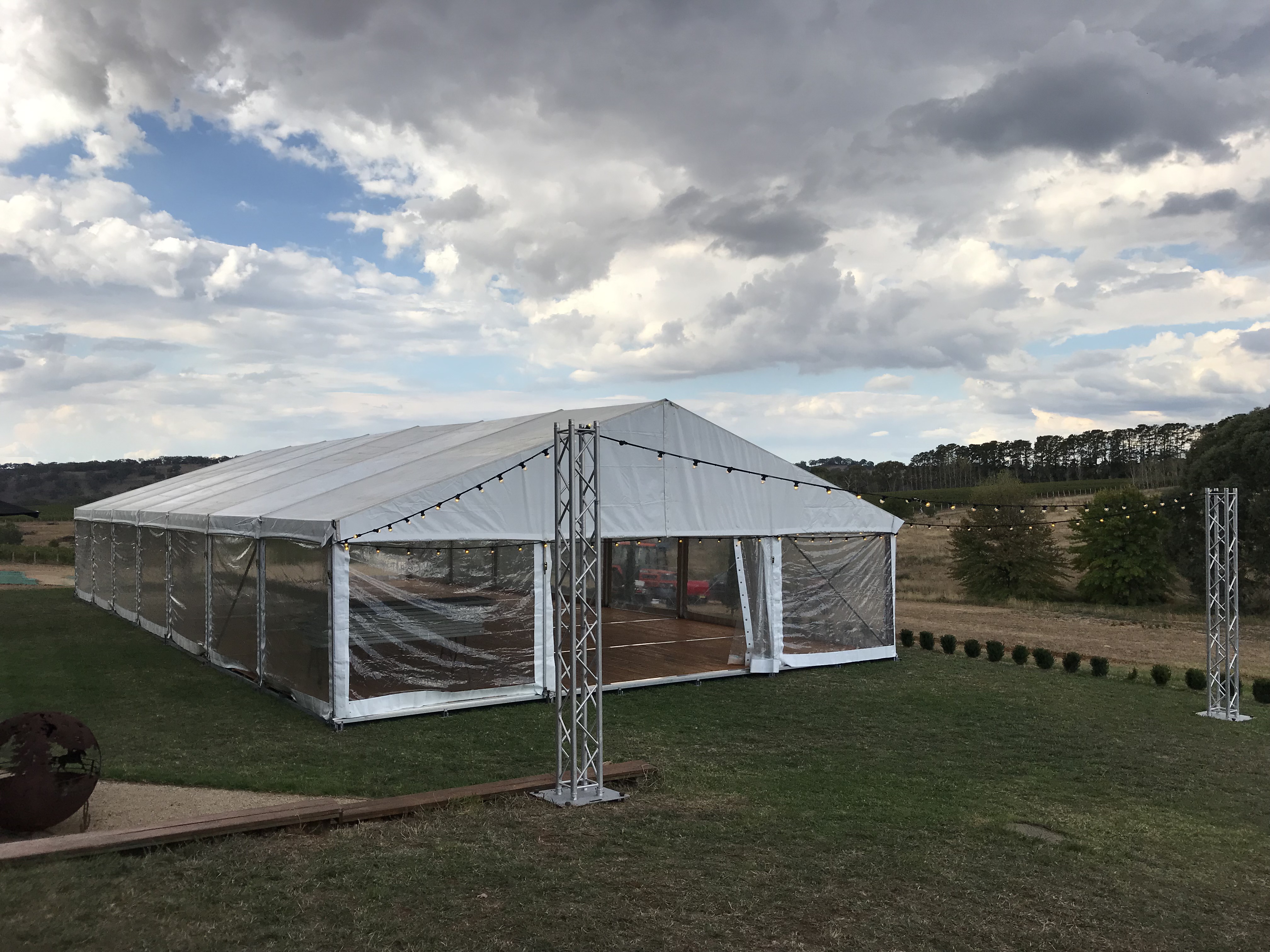 A weighted marquee requires an extra clear metre all the way around for the weights
