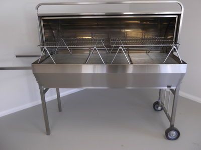 1360mm W x 560mm diameter cooking surface, 3 wire racks.