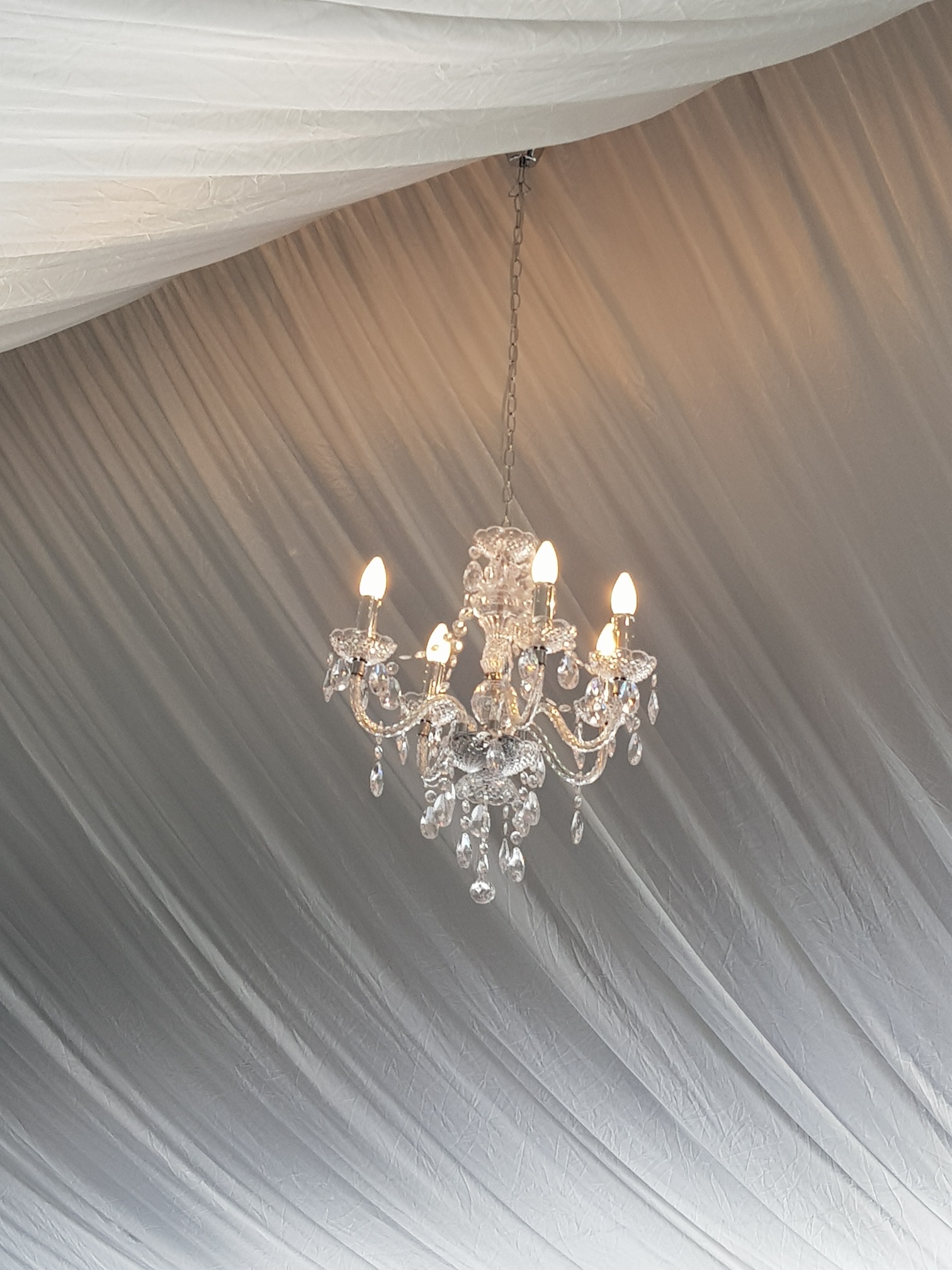 Our sparkling chandeliers teamed with our fairy lights and silk ceiling lining create a truly magical feeling.
