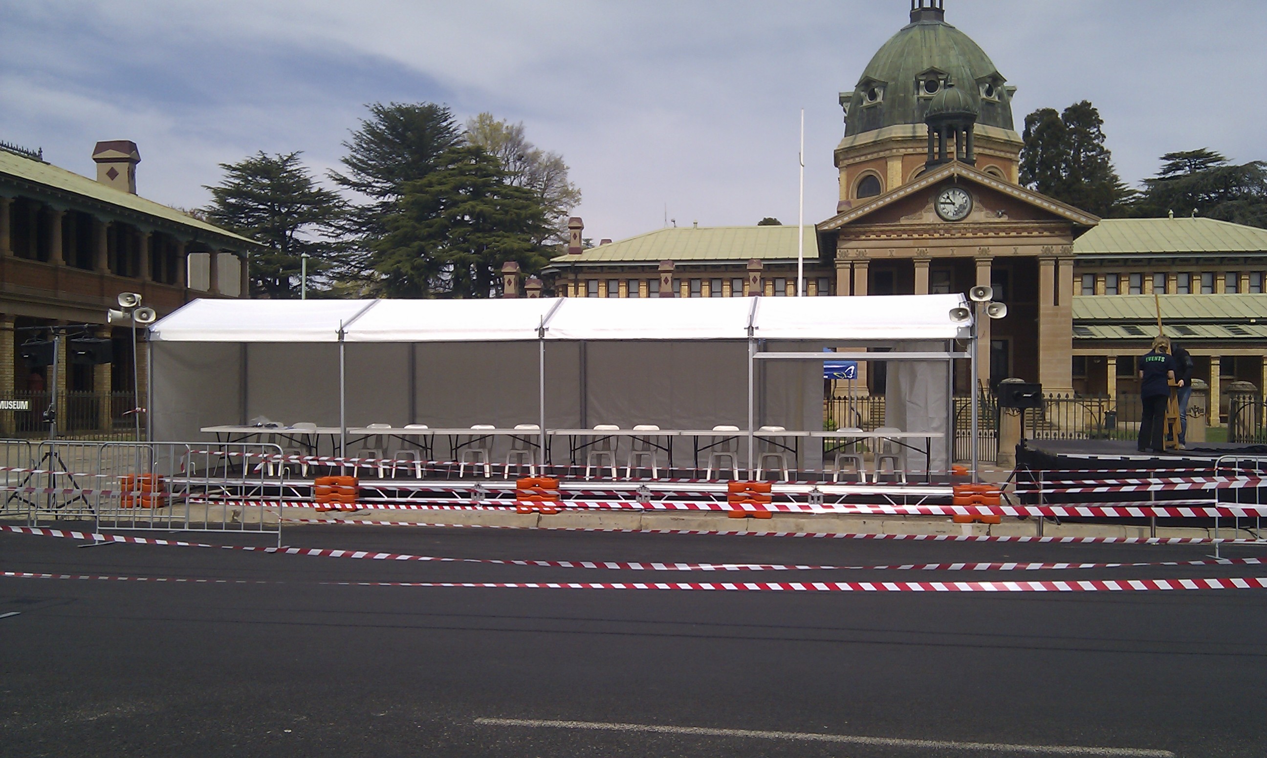 A weighted marquee requires an extra clear metre all the way around for the weights