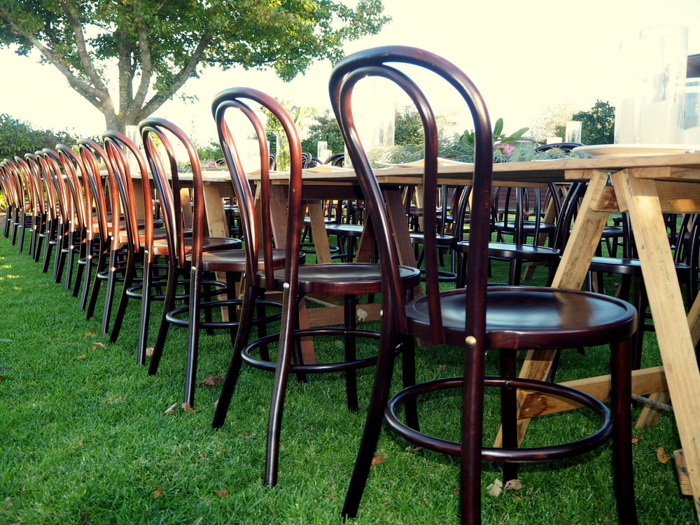 These brown Bentwood Chairs go perfectly with our rustic tables. Popular with many brides.